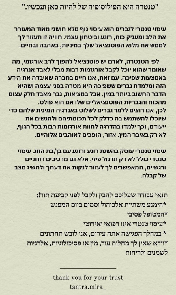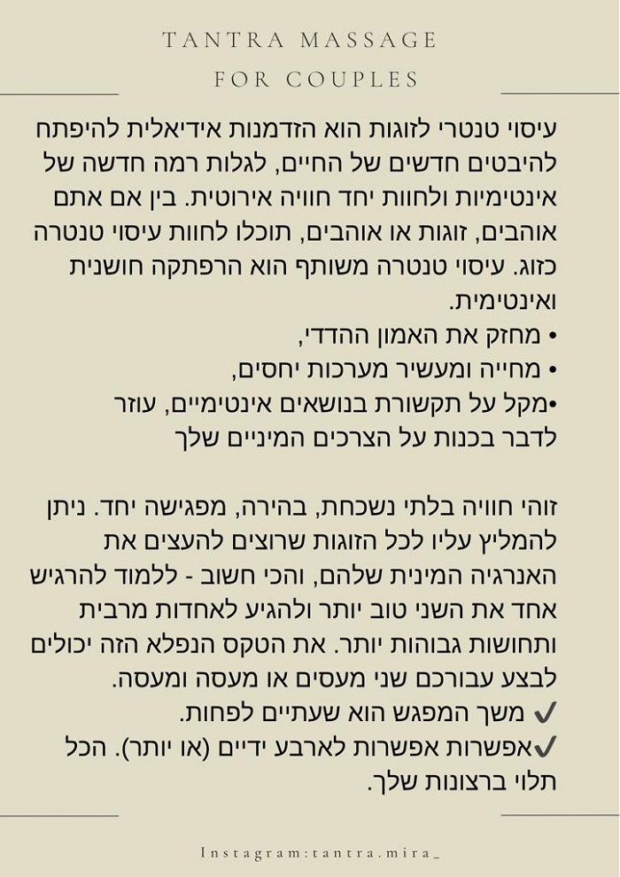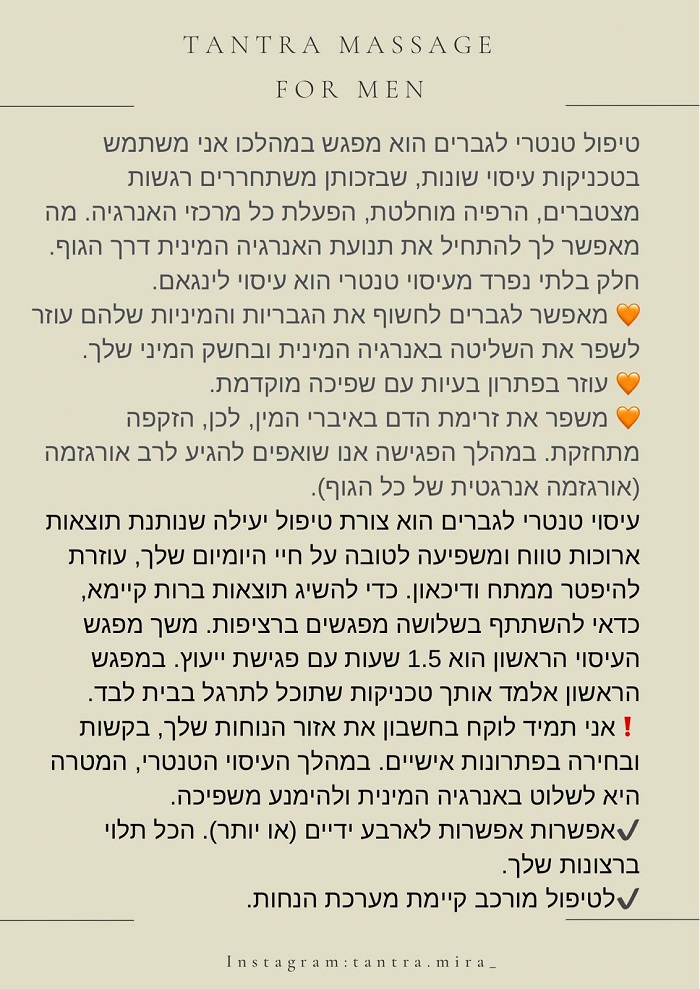 דוד, מעסה ומטפל רב תחומי, מקצועי ומוסמך משנת 1995. מעסה במגוון סגנונות- עיסוי שוודי, עיסוי הוליסטי, עיסוי רקמות עמוק ועיסוי טנטרי חושני, מפנק, מענג, משחרר וחופשי. גישה אישית ברגישות רבה. ליחידים ולזוגות. במקום פרטי, מפואר נקי + מקלחת צמודה. כתובת: צפון תל אביב.