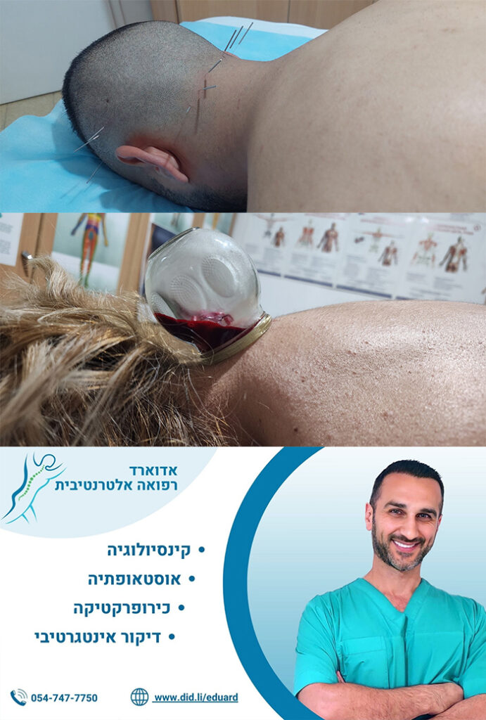 כירופרקט, אוסטאופת, קינסיולוג, מומחה לדיקור יבש מעורב עם דיפלומות בינלאומית בלימודי כירופרקטיקה, אוסטאופתיה, קינסיולוגיה, דיקור אינטגרטיבי – מהמומחים המובילים בתחומים אלו בישראל, ברוסיה ובאוקראינה. הטכניקות של טיפול ידני מחולקת למספר מחלקות, השונות בתכליתן זו מזו, בשל יעילותן הגבוהה של התוצאות (טיפול בעמוד השדרה, בצלעות, באגן, בגפיים, במפרקים, באיברים הפנימיים, בשרירים, ברצועות, בעצבים), מה שעוזר להקל על המטופל מכאב. בקליניקה ניתן לטפל בבעיות שונות הקשורות לכאבים, ללא ניתוח או תרופות: כאבי ראש, כאבי צוואר, כאבי גב, פריצות דיסק, עקמת, שרירים תפוסים, עצב ישיבתי, כאבי רגליים וברכיים, כאבי ידיים וכתפיים, כאבים באיברים פנימיים, כאבים שונים בגוף, בעיות מין אצל גברים ונשים, פוריות ועוד… הצעד הראשון שלך לפתרון הוא להגיע אליי, בקליניקה אבחן את שורש הבעיה ומיד ניגש לטיפול.